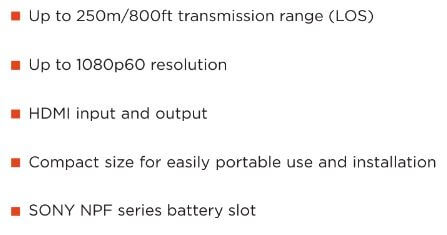 1.Wireless HD; long distance transmission; up to 700m range; 2. 2TX-to-1RX; Tally function; support 2 channels HDvideo transmission; in 1 RF channel provide a seamlessconnection between RX and video switcher; 3.Support both SDI and HDMI input; 4.Simple installation; convenient operation;flexible application;eliminate the hassle of running wires for multi-position.