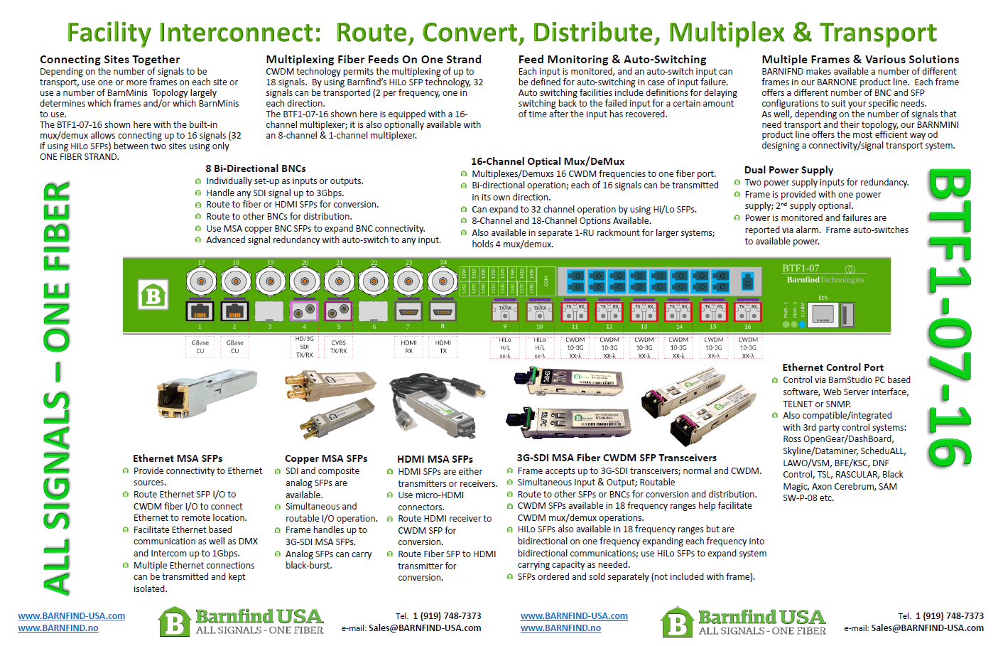 This is the most popular BarnMini. It gives a unique platform to take in most video electrical signals and convert it to optical.