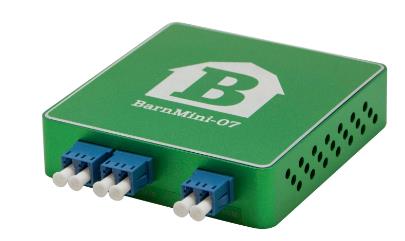 These standalone solutions are ideal for smaller jobs where the BarnOne frames may not be required – they represent the “Swiss army knife” of the conversion and signal transport part of the industry. A rackmount solution is available allowing you to mount several units together or, you can use these little boxes as “throw-downs” behind racks and inside ceilings and floors to solve conversion and signal transport challenges as needed. The BarnMinis are ideal standalone solutions where no control is required and solve everything from a simple task to more comprehensive solutions where the BarnMini s are used in conjunction with BarnOne’ frames to empower complete distributed systems in lager facilities. The BARNMINI07-3743 is a 4-channel CWDM mux that can be used e.g. for transportation of 3G-quad over different mediums. This is a compact, efficient and affordable mux. It fits into the BarnMini BTF-Mini-16 frame. The BarnMini-07 saves you both rack space and money. Features: Use any SFPs from Barnfind or any other SFP supplier as long as they are MSA compatible. All BNCs and SFP outputs are re-clocked. Unique HDMI to SDI solutions with any fiber distance depending on SFP selection. Multimode to Singlemode conversion in one Mini. BarnMini Housing in 2.5RU for up to 16 x different BarnMinis. All BarnMini modules are operational from 5V to 24V. Can be used as a standalone box or in advanced systems with BarnOne or any 3rd party solution. AC adapter is included. Rock solid mechanics and technology. The BarnMinis are designed to work in harsh environments. Specifications: Optical Ports LC/PC connectors Center Wavelength BM-07 3743: 1370, 1390, 1410, 1430nm Channel clear passband +/- 6, 5nm Insertion Loss <1, 2dB Passband ripple <0, 5 dB Adjacent Channel Isolation >30dB Non-Adjacent Channel Isolation >45dB Polarisation dependant loss 0, 02dB Directivity >50dB Return loss >45dB Polarisation Mode Dispersion <0, 2ps Power supply 12-24V DC. Power supply included Physical size 3.6 inch x 3.8 inch x 0.8 inch (92mm x 98mm x 22mm) 0.4lbs (200g) Item Includes: 12-24V DC. Power supply included