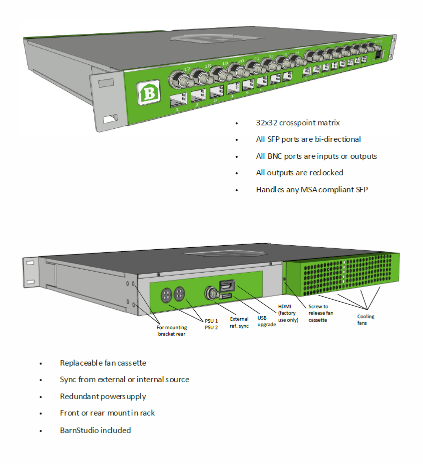 - A full 32 x 32 router in every BarnOne 1RU frame.