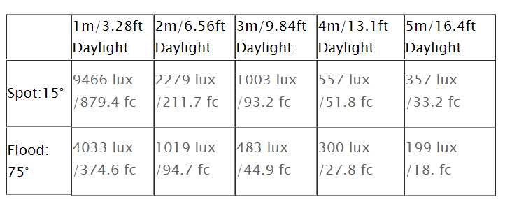 LIGHT LUX/1meter | Light Lux not entered yet |