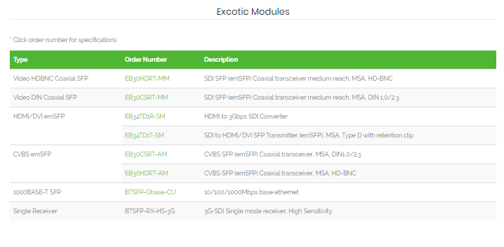 The Barnfind philosophy is to offer a future proof platform that saves customers space and money. Our BarnOne concept accepts any MSA SFP (Small Form Factor Pluggable) because you never know what tomorrow brings! Any of today’s MSA SFP will fit into the system, and we are prepared for those that do not exist yet. Barnfind has the Barn for it. All SFP’s are installed in SFP cages in our Barns that are capable of handling signals up to 12Gbps.