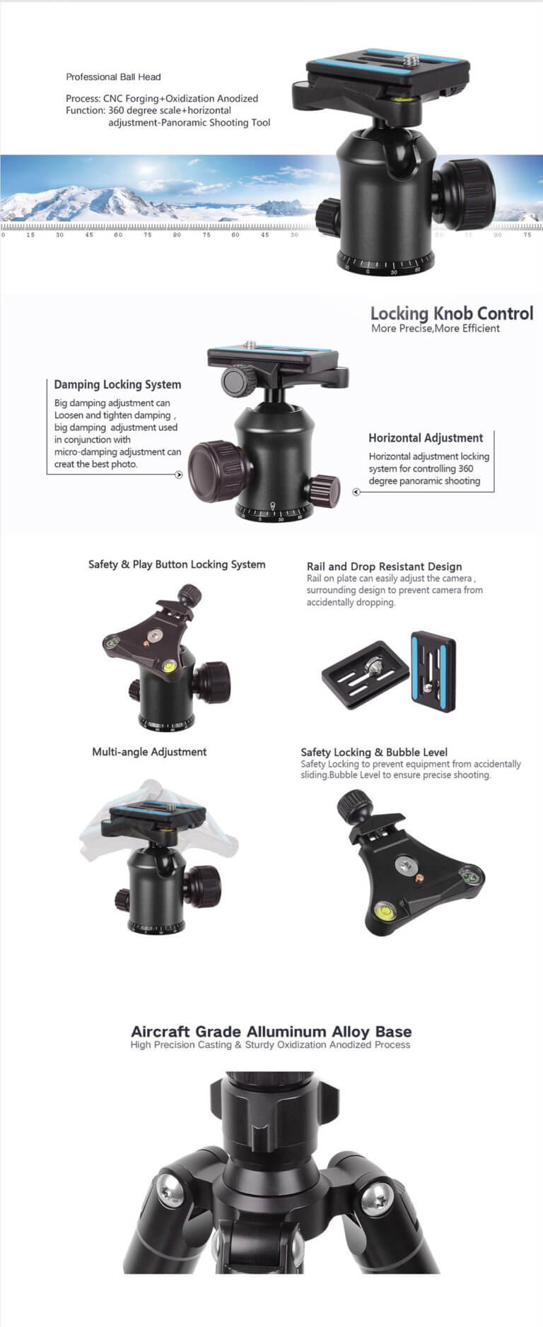Supports up to 22lbs – Traveler tripod with 180 °ree leg folding mechanism and creative automatic pull-down leg angle lock mechanism make the angle adjustment more easier, which is the perfect solution in terms of stability and convenience for hobbyist photographers.