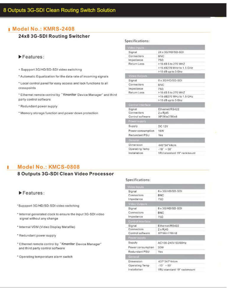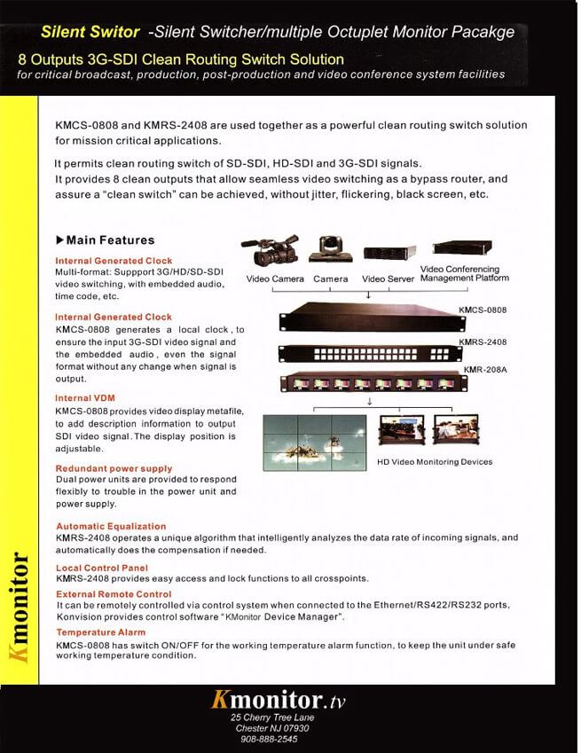 KMR-208A 2inch 8screens 1ru rackmount LCD monitor 8 Outputs 3G-SDI Clean Routing Switch Silencer Solution.