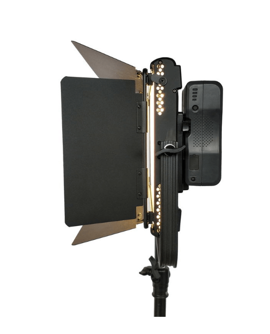 The metal housing of this LED soft Panel light is designed and optimized for passive cooling through efficient internal airflow as well as acting as a heat-sink. It can run in a studio setting without disrupting audio recording. Those are absolutely Studio friendly.