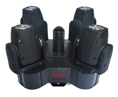 - Function: 4 individual mini LED Moving Head Lights, 4 narrow beams, every light can be controlled individually, with dimmer, strobe, and speed control function